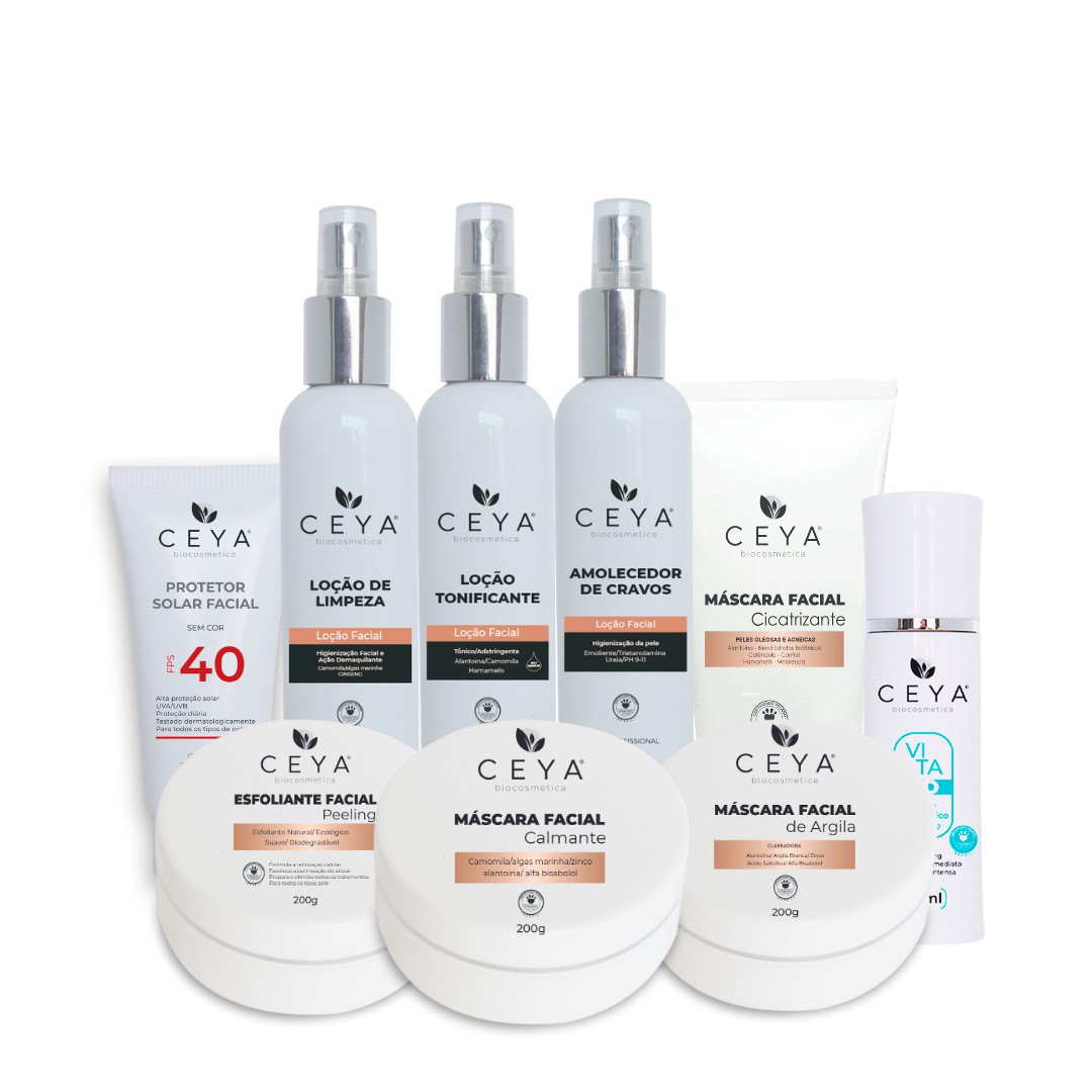 Adquirindo o Kit você leva totalmente grátis uma esponja facial de limpeza e o Protocolo Ceya Biocosmetica com o passo a passo de Uso dos produtos contidos neste kit que foram desenvolvidos por especialistas da área da estética facial exclusivamente para a Ceya Biocosmetica. Acesse nossas redes sociais e fique por dentro do cronograma de cursos voltados para estética.